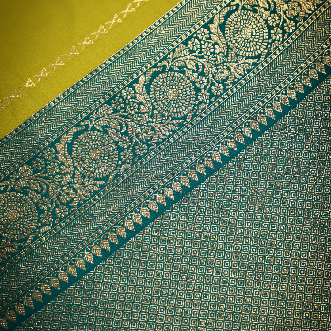 A stunning Kanjiwaram saree with rich nylon jari, offering a luxurious and festive look.