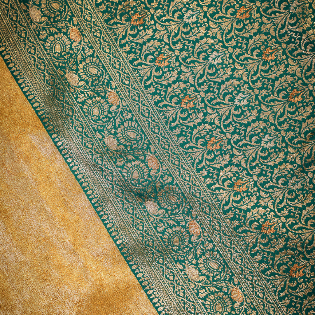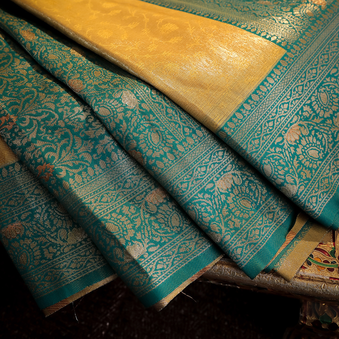 A classic Katan Silk saree with intricate Anmol Zari work for a royal touch.