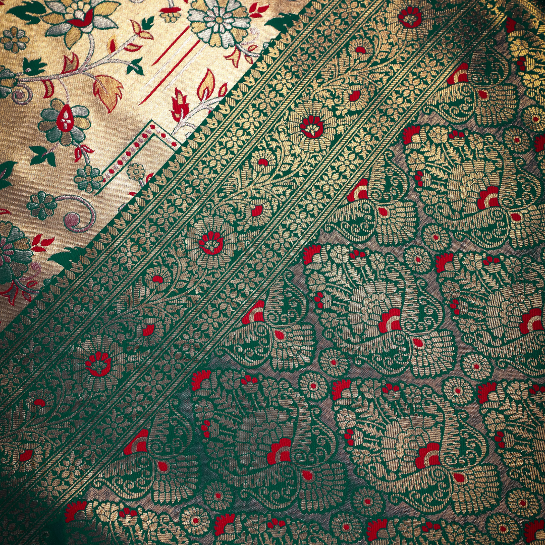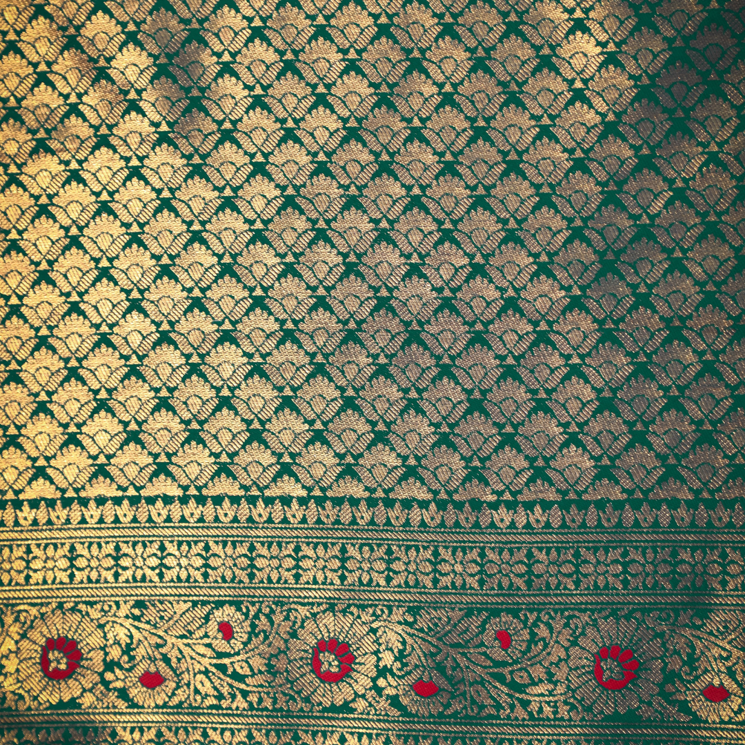 A ceremonial Dharmawaram saree in 6.5 meters cut, detailed with Nylon Jari that exudes tradition and class.