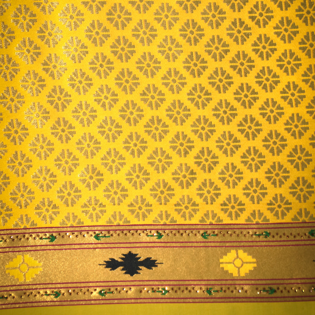 Perfect for grand occasions, this Paithani silk saree boasts vibrant meenakari designs and radiant Anmol Jari work. The bold and striking patterns reflect expert craftsmanship, while the smooth silk fabric ensures easy draping. Whether for weddings, festive functions, or cultural celebrations, this saree’s timeless charm makes it a standout choice. Pair it with gold or pearl jewelry for an elegant finish.